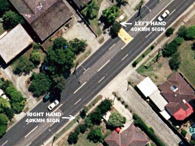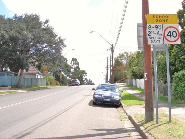 - Loftus, National Av NB near Pindari Av, "End 40" sign is 15m before “40” on road and start sign (ie. inside school zone)