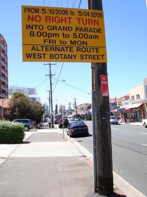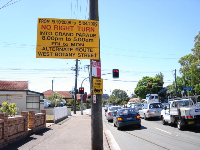 Moving the signs greatly increased the apparent installation cost, as the wiring then had to be run down the power poles inside reinforced steel channels and underground to the signs. In the latter case it meant tunnelling under the driveway. (There was no actual cost increase as Energy Australia ran the power for nothing.)