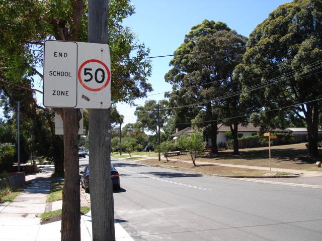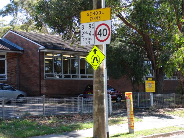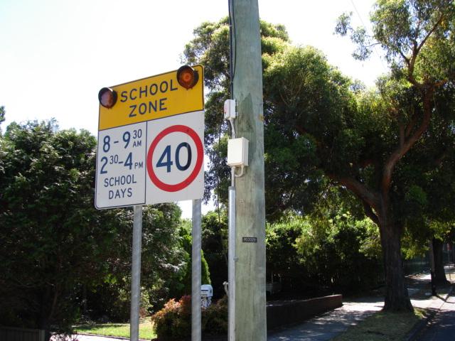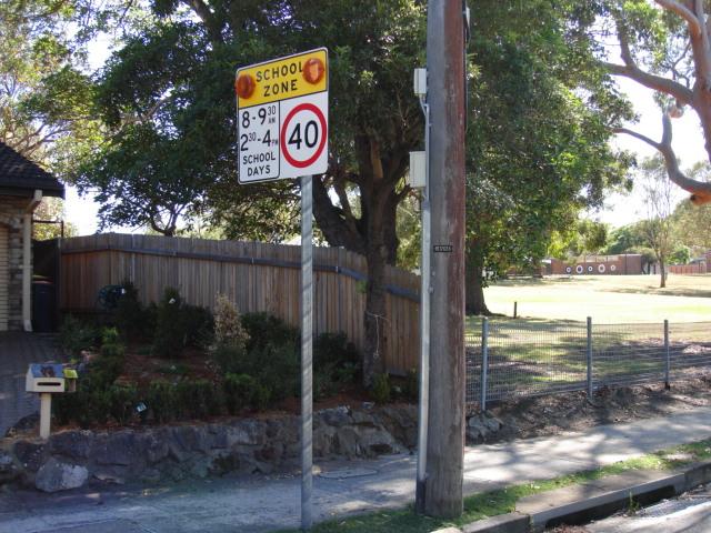 The 40kmh sign and "End School Zone" sign were both on power poles. The RTA relocated the 40kmh
