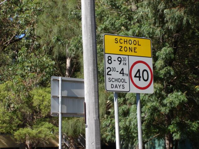 School Zone" sign were both on power poles. The RTA relocated the 40kmh